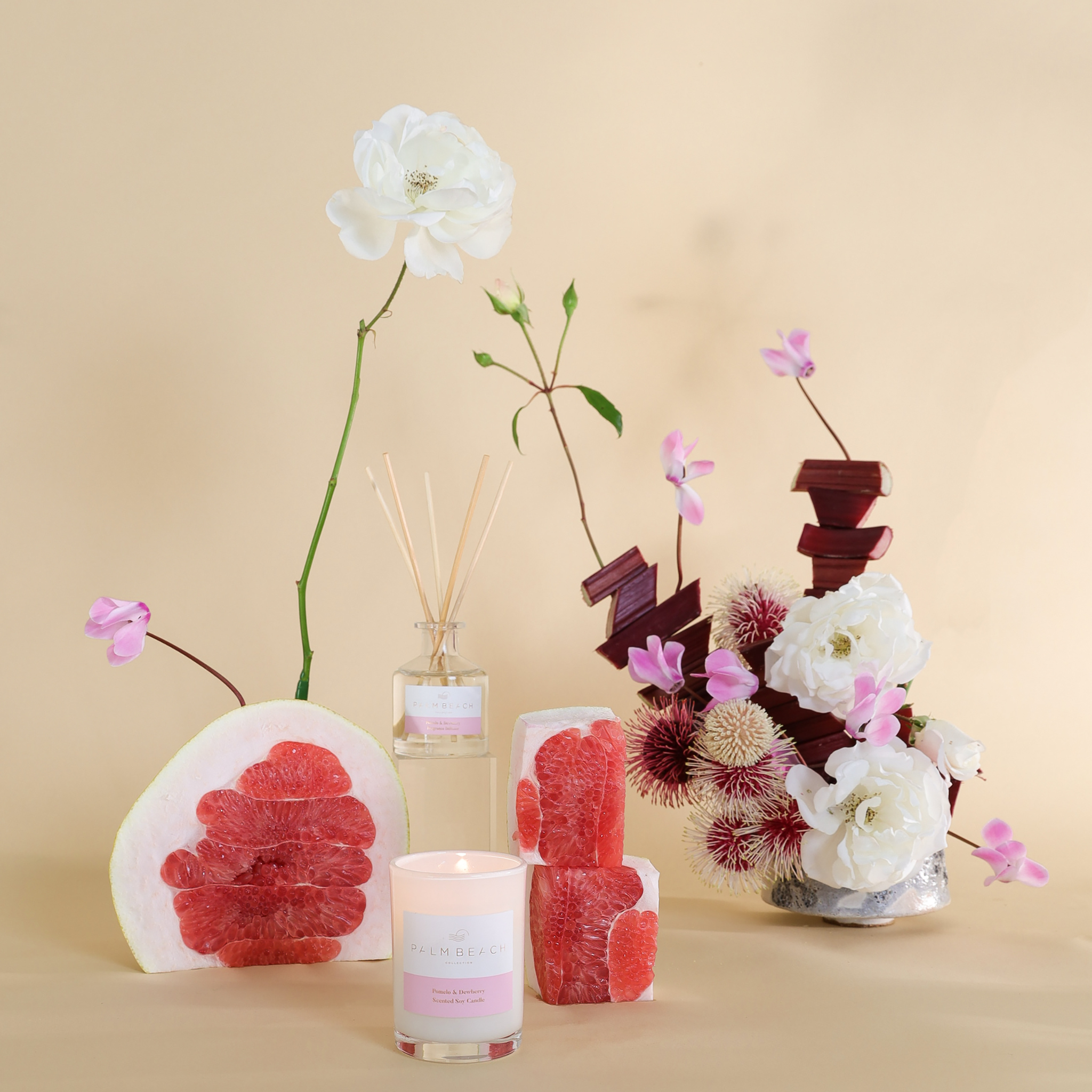 A party of juicy dewberry, delicate florals, fresh pomelo all tied up with cozy wood vibes. It's like strolling through sun-kissed gardens on a warm spring day.